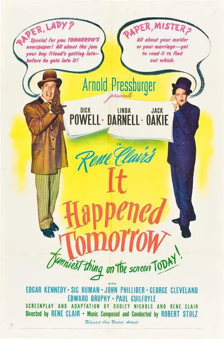一位雄心勃勃的报社记者(迪克·鲍威尔饰)渴望抢占竞争先机,他希望自己能在新闻发生之前知道这一消息。一位神秘的老人(约翰·菲利伯饰)赋予记者这种权力,尽管他警告不要使用它。现在,这位记者能够提前 24 小时预测新闻,他开始抢占所有其他报纸,在赛道上选出肯定的获胜者,并享受生活......直到他提前得知自己的死亡。我们英雄的问题:他如何阻止未来发生?(imdb)主人公每天晚上都收到了第二天早上出版的报纸,他在数小时内获悉自己即将被命,然而他却幸存下来了。(乔治·萨杜尔《世界电影史》)