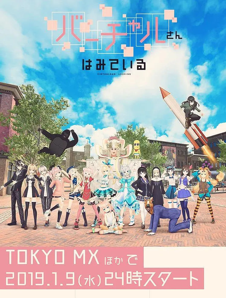 史上第一部以虚拟偶像为主题,虚拟偶像主演、参演的番剧。总计约30名以上的VTuber参与出演的动画「バーチャルさんはみている」将于2019年1月9日开播。并且,庵野秀明也参与了这部作品提供了创意方面的协助。参演虚拟主播统计:オシャレになりたい!ピーナッツくん、風見涼、桜樹みりあ、シスター・クレア、鈴木ヒナ、田中ヒメ、月ノ美兎、電脳少女シロ、ときのそら、道明寺晴翔、猫宮ひなた、ばあちゃる、バーチャルグランドマザー小林幸子、バーチャルゴリラ、富士葵、ミライアカリ、ヤミクモケリン、ユニティちゃん、夢咲楓、家長むぎ、える、カルロ・ピノ、北上双葉、剣持刀也、金剛いろは、静凛、届木ウカ、樋口楓、もちひよこ、物述有栖